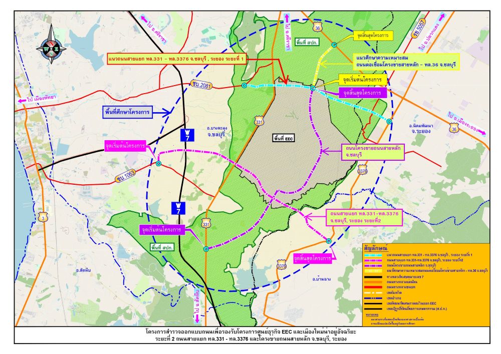 โครงการสำรวจออกแบบถนนเพื่อรองรับโครงการศูนย์ธุรกิจ EEC และเมืองใหม่น่าอยู่อัจฉริยะ ระยะที่ 2 ถนนแยก ทล.331-ทล.3376 และโครงข่ายถนนสายหลัก จ.ชลบุรี,ระยอง โดยจะมีการสำรวจออกแบบรายละเอียดจำนวน 2 สายทาง และศึกษาความเหมาะสมอีก 1 สายทาง โดยมีระยะทางรวมประมาณ 23 กิโลเมตร ซึ่งมีรายละเอียดดังนี้